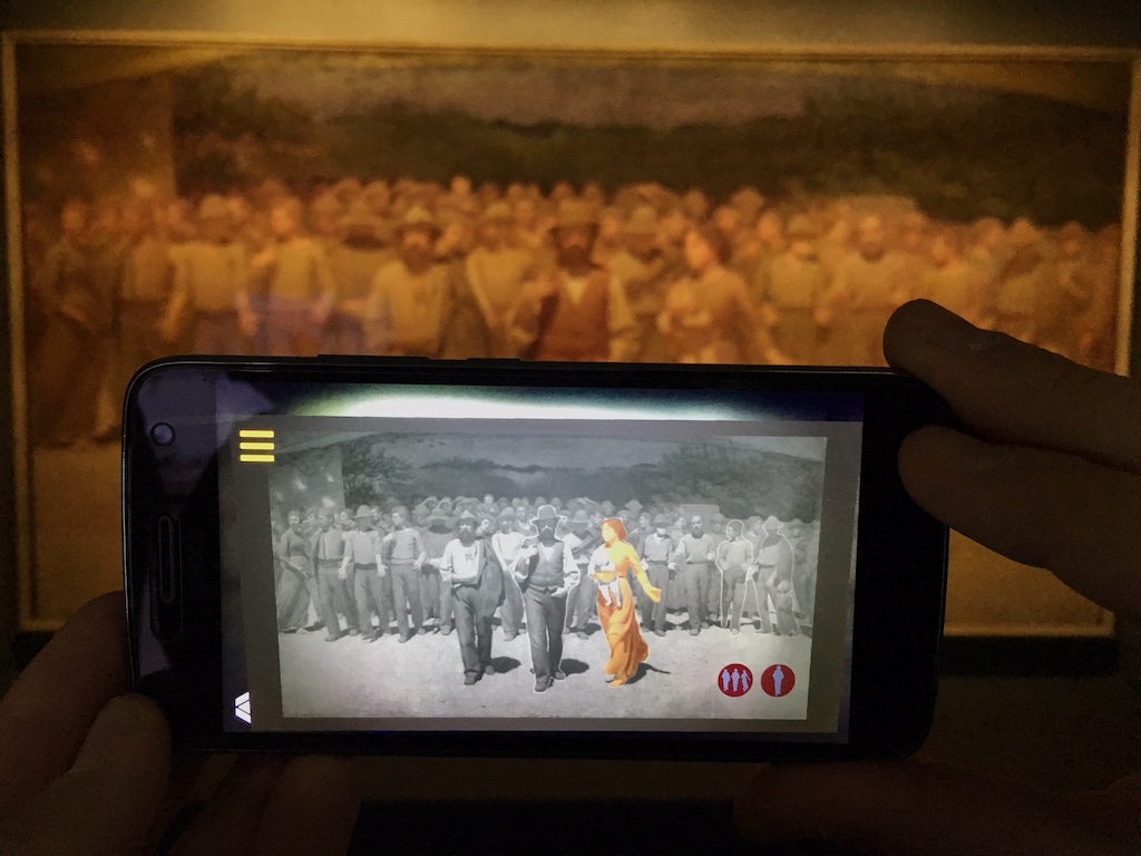 Sopra. Il Quarto Stato di Giuseppe Pellizza da Volpedo in realtà aumentata.