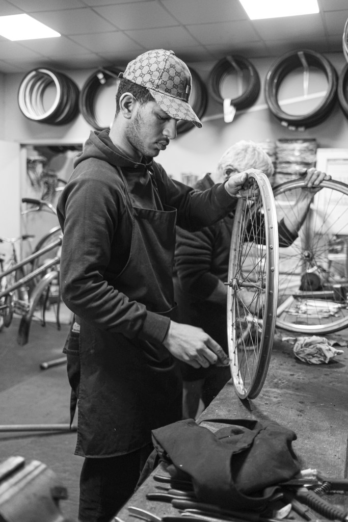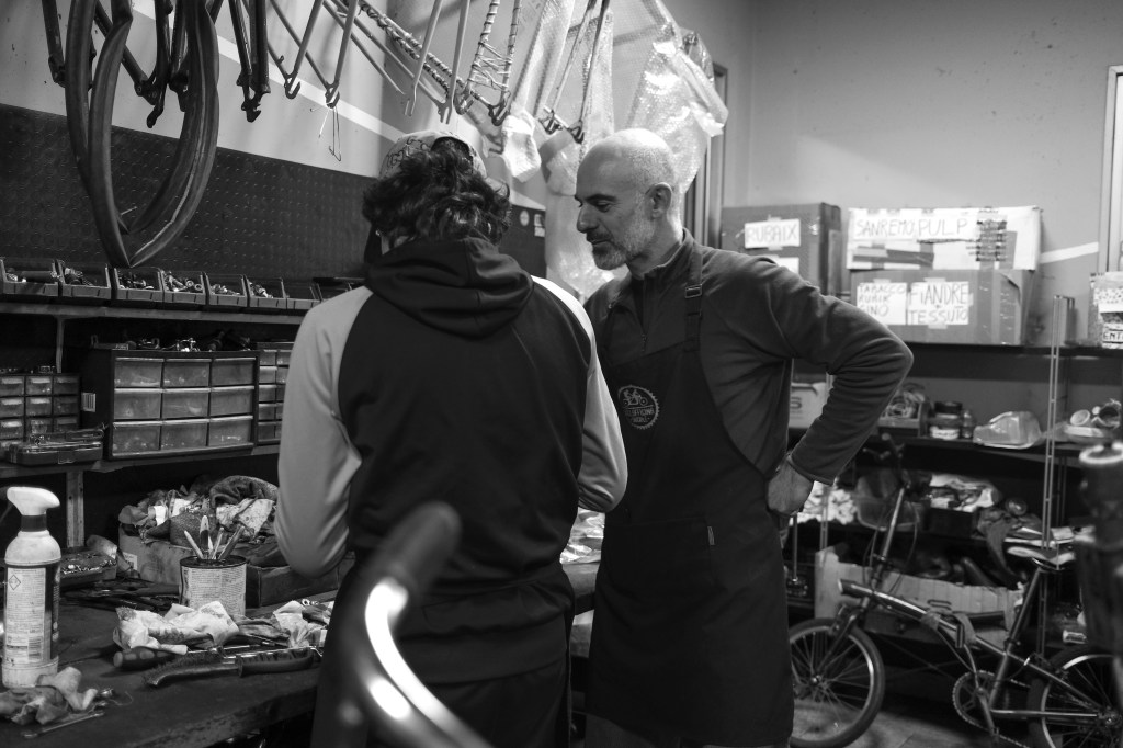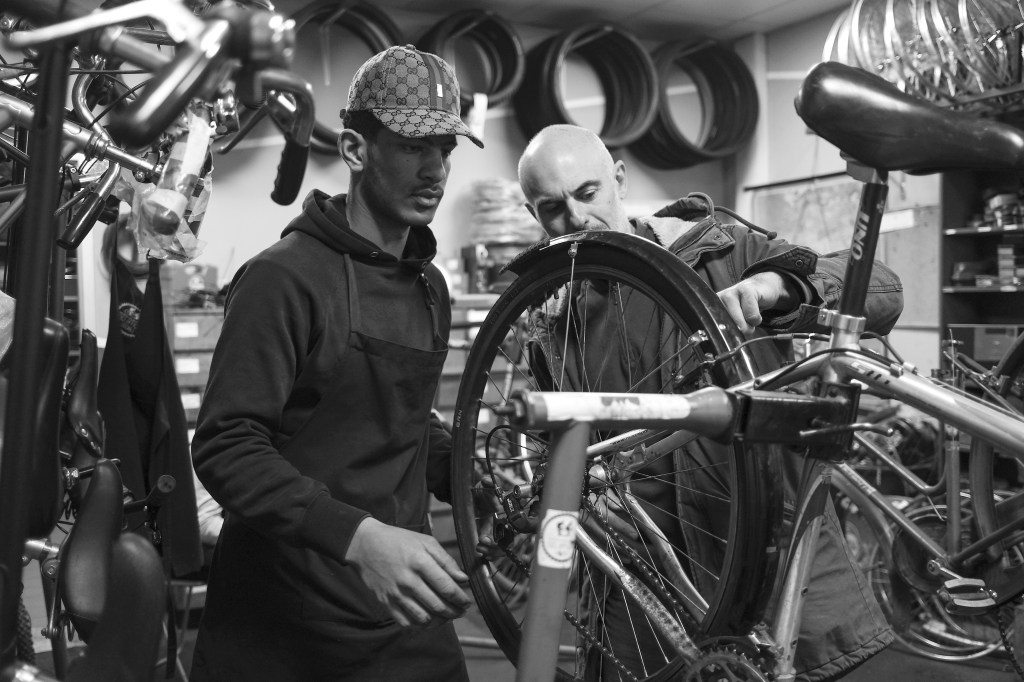 In passato, ad esempio, siamo stati ospitati in una comunità per minori nel quartiere San Leonardo di Milano, ma lì ci siamo resi conto di essere troppo isolati. Una comunità è una microsocietà chiusa, mentre il nostro progetto ha bisogno di essere immerso nel tessuto territoriale per funzionare. Lo scambio con il cliente che entra e ci conosce è una parte essenziale di ciò che facciamo. Non siamo una ciclofficina popolare, ma a livello locale funzioniamo anche in quel modo: alcuni clienti ci chiedono di poter imparare, di mettere le mani sulla propria bici, e per noi questa è un’opportunità preziosa. L’interazione che si crea arricchisce i nostri ragazzi e rafforza i legami con la comunità.