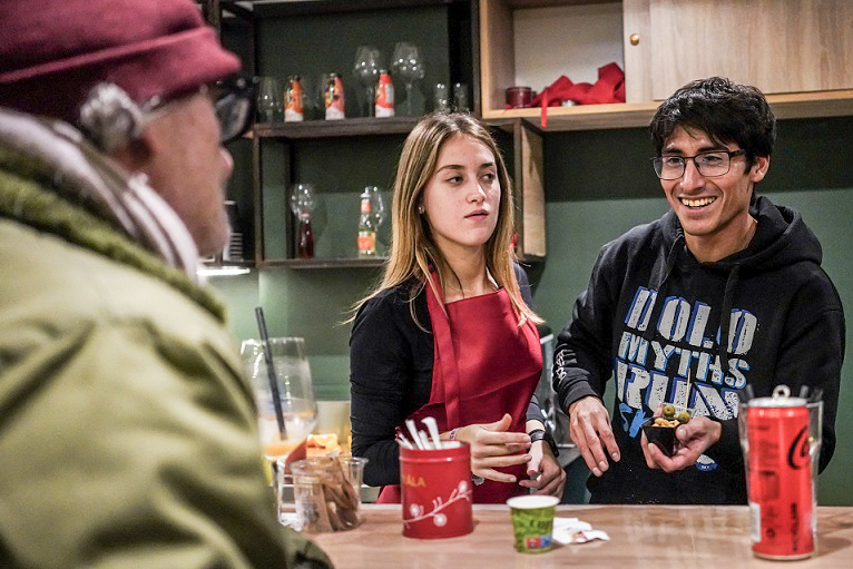 Con il tempo, il gruppo dei volontari si è ampliato. Dal secondo anno, oltre ai giovani delle parrocchie, abbiamo iniziato a coinvolgere anche studenti universitari e lavoratori più adulti. Questo ha richiesto un lavoro di formazione più strutturato, che oggi gestiamo direttamente. Nel bar Il Girevole, però, la dinamica del volontariato è particolare. Alcuni si dedicano al servizio strutturato, come accadrebbe in una mensa: gestiscono il bar, preparano le bevande, mantengono l’ordine e aiutano nel coordinamento generale. Altri, invece, frequentano il bar in modo più informale, come clienti abituali, entrando in relazione con le persone senza dimora. Magari vengono tre volte in un mese, poi spariscono per un periodo e poi tornano. Questo tipo di presenza, sebbene meno regolare, è comunque importante perché rende il locale un luogo vivo e dinamico.
