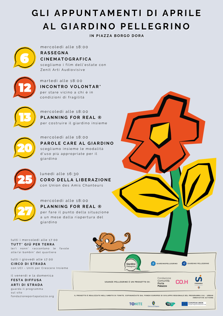 Riccardo Zucaro. La costruzione degli strumenti comunicativi parte sempre dall’individuazione dei target. È un punto di partenza imprescindibile, perché come dicevamo, i pubblici con cui entriamo in relazione — istituzioni, terzo settore, finanziatori, destinatari diretti, cittadini — sono molto diversi tra loro, e ogni differenza richiede un linguaggio e un mezzo specifico. Abbiamo imparato questo soprattutto attraverso l’esperienza del Giardino Pellegrino, che per noi è stato un grande laboratorio di sperimentazione comunicativa sul territorio. Il target lì era ampio e stratificato: famiglie con bambini, anziani, insegnanti, persone di passaggio, gruppi di residenti con origini culturali molto differenti. Una comunità nel senso pieno del termine, ma anche complessa da raggiungere e da tenere insieme.